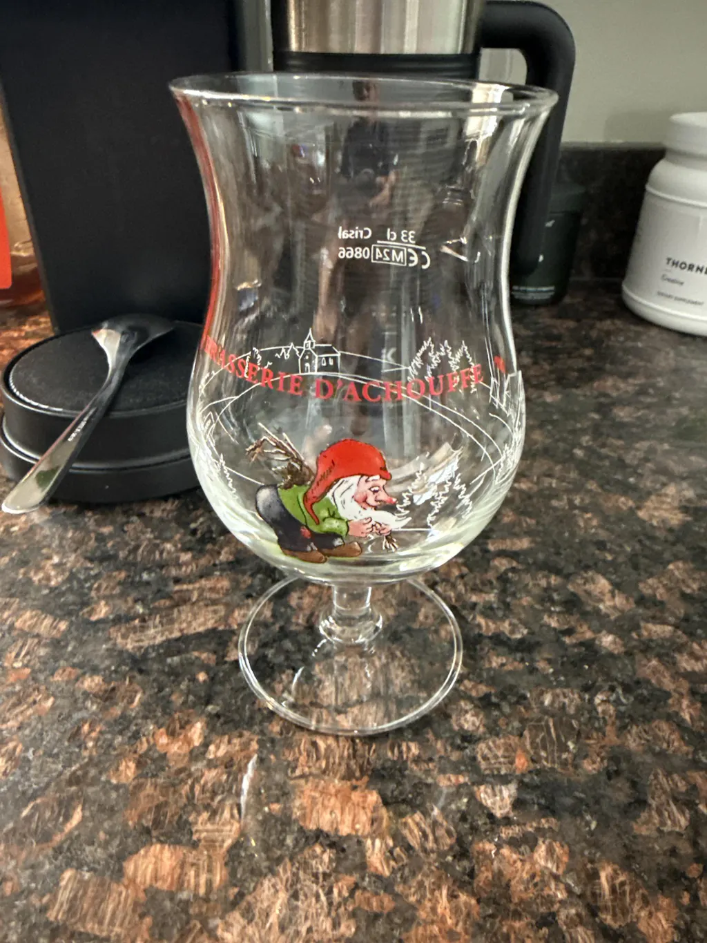Pour your favorite ale from Brasserie D'Achouffe into this authentic Chouffe beer glass and enjoy its flavor and quality as the Belgians do.