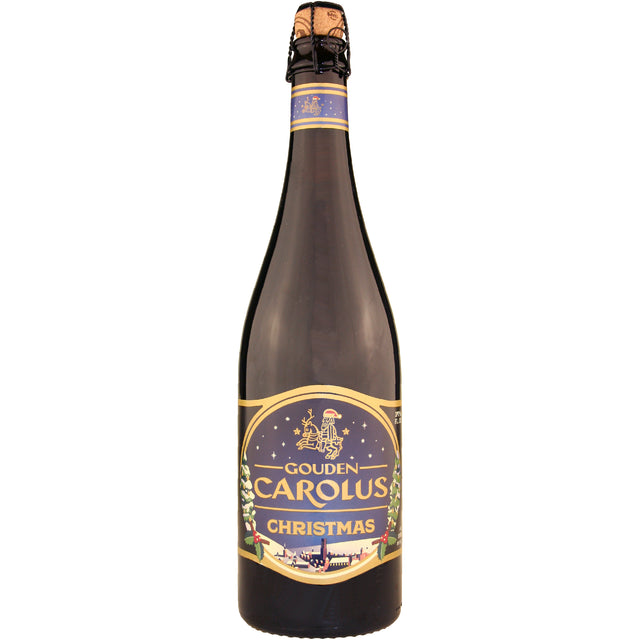 From a recipe that includes three kinds of hops and six different herbs and spices, Gouden Carolus Christmas from the Het Anker Brewery is an award winning Belgian Seasonal Ale that pours a deep, dark red with a frothy beige head.