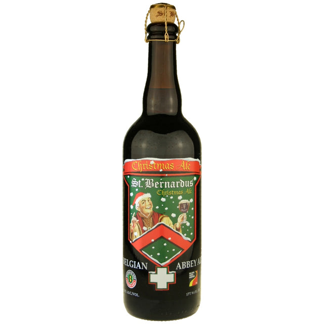 St. Bernardus Christmas Ale (ABV 10%) is an abbey-style ale that pours dark reddish brown with a frothy beige head and medium carbonation. Top fermented and bottle conditioned, the brew boasts aromas of sweet caramel, dark fruits, raisin, cinnamon, clove, chocolate, bread and notes of anise. Taste follows a similar profile and also includes sweet apricot, banana, licorice, marzipan, and molasses, some peppery spice and a slight hop bitterness. The mouthfeel is creamy and light to medium bodied; the 10.0% ABV is well hidden but warming; and the finish is long, bittersweet and dry.